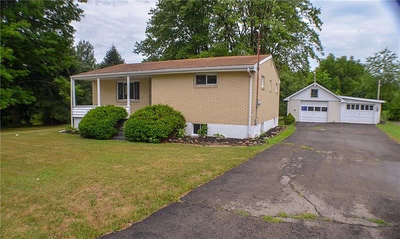 This home gives you the option of parking in dble car det grg or spacious drive. As you enter the Kiski Area School District brick ranch, you are welcomed into LR offering tons of natural light, hardwood floors, plaster walls and marble window sills. LR is open to EIK. 3 beds, each with hwood floors, plaster walls, closets & marble sills. Full bath rounds out the main level. Basement has lots of potential. This space could be finished for extra living space, storage or office space. The circuit break box has been replaced, garage was inspected for any electrical issues, brand new gas, forced air furnace (c/a is not present, but could be added) & H2O. Rear deck is offered with "plastic" panels to protect from the weather. Panels can be removed or an enclosed deck be created for year-round use. Rear & side yards offer many mature trees, a shed and level lot. Current owner had approval for future business. Application would need to be filed, again.