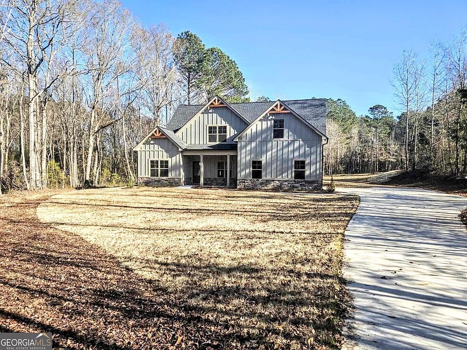 Your Dream Home Awaits! Discover this stunning Grovetown Plan - a spacious 4-bedroom, Huge Bonus, 3-bath home perfectly designed for comfort and style. Nestled on 5 private acres with a serene creek, this property offers the ultimate retreat with no HOA restrictions! The Primary Suite on the main floor ensures convenience and privacy, while an additional bedroom with a full bath on the main provides versatility for guests or family. The Owner's Suite offers 2 oversized closets and a 84 inch double vanity! Enjoy relaxing evenings on the gameday covered back porch, complete with a cozy stone fireplace - perfect for entertaining or unwinding. Inside, the Great Room boasts soaring vaulted ceilings and a second stone fireplace, creating a warm, inviting atmosphere. The chef's kitchen is a showstopper with an abundance of cabinetry, gleaming granite countertops, and an impressive 8-ft island ideal for gatherings. A finished bonus room over the garage offers endless possibilities - use it as a flex space, bedroom, home office, or media room! *** Special Offer: Use our Preferred Lender and receive up to $5,000 in lender credit! And the Builder is offering up to 10,000 to use as you wish, towards closing, buy down rate, or take it off purchase price, you choose!***