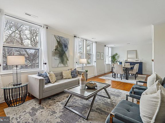 Warm and welcoming two bedroom, one bathroom condo located in Kentucky Manor, a boutique building nestled in the heart of Capitol Hill. A wall of sun-filled windows gives the open concept living area a light and bright feel while hardwood flooring and crown molding add traditional touches to the space. Gather around the cozy fireplace surrounded by built-in shelving and cabinetry. The living room and dining room flow together effortlessly for easy entertaining while a pass-through to the kitchen provides additional serving and presentation space. Continue into the kitchen complete with butcher block countertops complimented by white cabinetry and stainless steel appliances. Recessed lighting above the workspaces add the finishing touch. The Owner’s Suite is tucked away for added privacy and features a large walk-in closet for ample storage. A sunny window with tree-top views and a ceiling fan complete the room. A second bedroom offers excellent flexibility as a home office or guest room. A spacious hall bathroom with a large vanity and a convenient laundry closet with a stackable washer and dryer complete this home. Relax or entertain on the private balcony offering a lush tree-top view and overlooking the manicured grounds. Kentucky Manor is a well-maintained building located close to everything. A wide paver sidewalk leads to the front entrance full of lush landscaping. Residents of Kentucky Manor enjoy amenities including additional storage space and cable TV. This pet friendly building offers plenty of green space and street parking. Take in everything Capitol Hill has to offer from this beautiful condo! Tax Record SF: 923 3rd Party Vendor SF: 1109