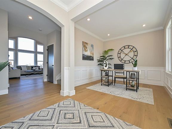 Move In Ready! New & Under Appraised Value! A true gem enriched with many upgrades. Elegant wainscoting & crown molding in the entry foyer and living rm/office. An expansive great rm has a dramatic wall of windows, 17ft ceilings and gas fireplace. The gourmet kitchen is a standout featuring new high-end Bosch stainless steel appliances, a three-door fridge, a gas stove/oven, a 2nd wall oven & micro and 3 door fridge. A huge center island has stunning counters & a free motion faucet. The dining area completed by an adjacent flex room opens onto a trex deck overlooking the premium lot. A beautiful staircase leads to the upper level with 4 spacious bedrooms. The master suite offers a spa-like ensuite with soaking tub, dbl sinks and fantastic tilted shower. The adjoining walk to closet in everyone's dream. An upper level laundry rm includes your new washer & dryer. Why build? This can be yours today.