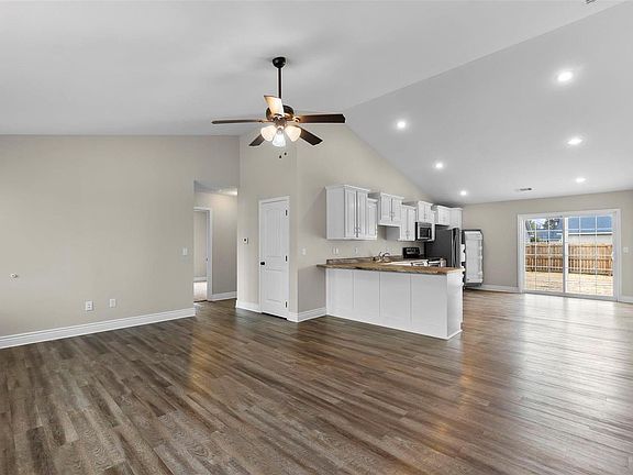 - Dining/Living Room Combo, Kitchen/Dining Room Combo, Breakfast Bar, Custom Cabinetry, Pantry, Vaulted Ceiling(s)