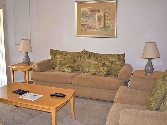 Best location in the complex! only a two-minute walk to the clubhouse! Also, the Unit is next to the guard gate, which is 24hour security! Beautiful 3-bedroom townhouse in Regal Palms Resort and Spa, 3 SUITES, one downstairs which is great for kids or adults, and 2 upstairs. All bedrooms have their own bathrooms and walk-in closets! The suite downstairs has an additional entry from the outside. The master bedroom also has a balcony to enjoy the morning coffee and a great view! The laundry room upstairs has a storage space. This unit also has a Wi-Fi Sensi thermostat, easily controlled from your phone app. This gated community resort is just a short drive to the all-major attractions, has a resort bar, fitness center; spa; arcade kids playroom with lots of games; resort pool with water slide, lazy river, a sand volleyball court; a pool-side tiki bar; and ice cream shop! The monthly HOA fee includes external pest control, cable TV, and internet service. This is a fully furnished villa that is awaiting new owners just to move in!
