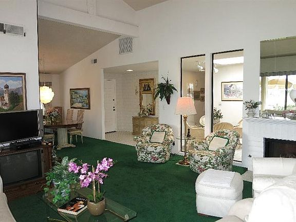 This south facing Monterey Country Club 3000 plan features panoramic mountain and golf course views. Located on the ninth hole of the East course, this unit sits on a cul-de-sac and enjoys views of the clubhouse, water feature, green and multiple fairways. It's just steps away from one of Monterey's 37 community pools and spas and a short walk to the clubhouse and fitness center. The 3000 Plan is one of the largest floorplans in the club and features three large bedrooms (one of which is being used as a spacious den/office) and two bathrooms. This unit includes a converted atrium, tiled patio and is available furnished per inventory. Monterey Country Club features 27 holes of championship golf, pickleball, tennis, newly-renovated fitness center, pro shops and full service clubhouse...all available to homeowners with NO initiation fee!