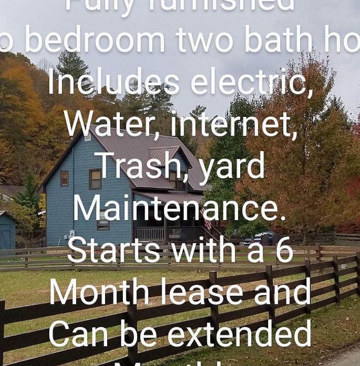 Lease term negotiable. Rural, Two bedroom, two bath home for rent in Butler, Tennessee. Located about 20 minutes from Mountain City. If you are moving to the area, have bought property and are planning to build, this might be exactly what you are looking for. It is normally an overnight rental that will be temporarily converted to a longer-term rental. It is fully furnished, with all utilities paid by the owners. Monthly price includes electric, water, trash service, cable, internet, and all yard maintenance. It is TurnKey ready and will be available starting March 1st 2023 Please message for more information or an application. $1800 per month. First month, last month and security deposit required. One small dog may be considered with an additional deposit. Minimum of a 6-month lease, which could be extended beyond the term of 6 months. all utilities including electric, water, trash service, internet and streaming TV apps are included in rental price. No smoking inside the house.