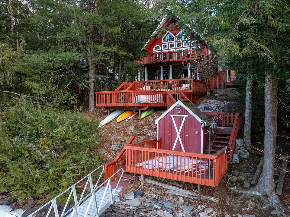 Outside, soak in the hot tub as you take in the tranquility of the lake’s natural beauty, or gather with friends and family in ample outdoor entertaining areas. For an added touch of fun and versatility, the property includes a detached cabin complete with two bunk beds (each with a trundle), a pool table, and an arcade game perfect as a guest retreat, party cave, or your very own lakeside clubhouse. Situated near the top attractions of the Sullivan Catskills, this home offers the ultimate combination of privacy and convenience, all with the freedom to personalize and enjoy—no HOA fees required. With approximately 3,126 sq. ft. of finished living space (including the basement and cabin), this property is more than just a home; it’s a destination. Bonus: This property boasts an impressive short-term rental history, making it an exceptional investment opportunity.Don’t miss the chance to own this extraordinary lakefront property. Schedule your private tour today and experience the ultimate lakeside lifestyle!