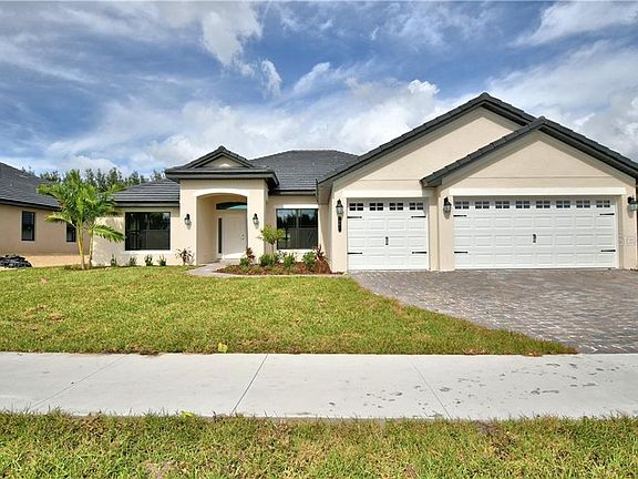 Under Construction. The photos are of a completed model in this subdivision. Colors and finishes may vary. This will be a 2508 Sq ft home with Lots of entertaining space and luxurious details throughout! Upon entering you will enjoy the open concept great room/dining room/kitchen with vaulted ceiling, display ledges, granite countertops, and more! The dining room will have Wainscotting on the walls for extra detail, the driveway will be pavered, and the roof will be tile. There's a nice covered lanai off the back and the master bedroom is HUGE with a GORGEOUS ample ensuite. This community is gated, has an INCREDIBLE clubhouse with fitness center, pool overlooking the lake, basketball, tennis, playground, and community boat ramp. So many upgrades you'll have to come see for yourself!