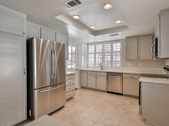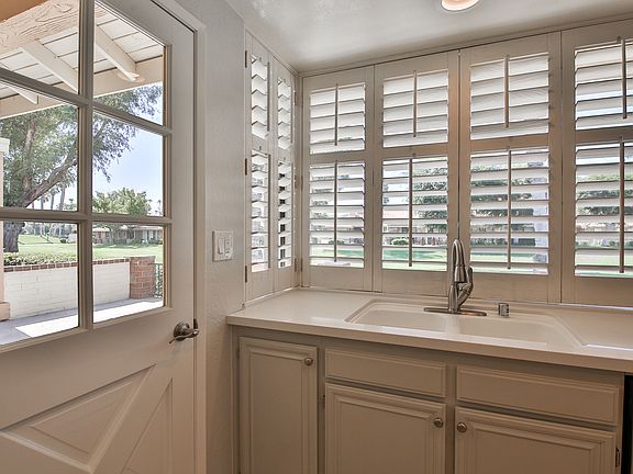 Beautifully remodeled unit with Panoramic South facing views of the Mountains and Golf Course. This condo is the 30 Model that originally came with an Atrium; this unit was updated and a third bedroom was added to replace the atrium. There is lovely natural light in the room from the sky light, mirrored closet doors and access to the guest bathroom. Across the hallway is the second guest bedroom. The last door on the left is the Elegant Master Suite. It has vaulted ceilings that gives the room a spacious yet cozy appeal. The master bath has a double vanity and walk in shower. The living room features vaulted ceilings, monochromatic painted brick gas fireplace and a sliding glass door that leads to the private patio. The kitchen is tastefully updated with quartz countertops, stainless appliances and there is a private entry door to the patio. The flooring in the living room, dining and hallway is updated with grey parquet wood. There is carpeting in the bedrooms. The interior doors were replaced with Raised panel doors, wide baseboards were added. The plantation shutters that are throughout most of the home add a special touch of class. The exterior side yard landscaping was recently installed. Monterey Country Club features a 27 Hole Ted Robinson Designed Golf Course, Clubhouse, Fitness Center, Tennis Courts, Bocce Ball Courts and 37 Pools & Jacuzzi's. All set on 375 acres of mature lush landscaping. Please call today for a private viewing of this lovely home.