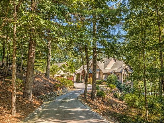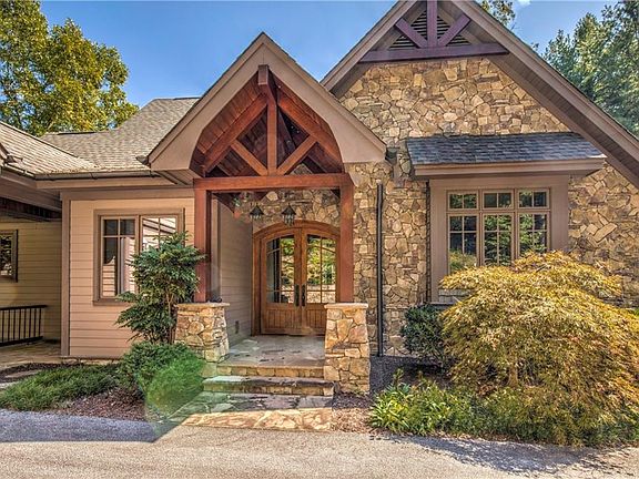 Nestled on an elevated home site over a wide cove is this charming stone front cottage with inspiring views that include the lake as well as several golf holes. Porches on both levels ensure the out-of-doors is always close at hand. A wonderful sense of privacy has been created with a serene drive into the home and lighted stone pillars serving as the entry to the motor court. Yet this home lies within easy walking distance of the clubhouse and golf, making this one of the best locations in all the Vineyards. The Great Room is anchored by a stone fireplace & wonderful beam work and is visually open to the kitchen and dining room. The home exudes a comfortable, cozy atmosphere punctuated by impeccable quality. Step out to the screened porch and enter a peaceful world of nature. The lake looms below, the greenery of the golf course runs along the edge of the lake but never puts the home directly on the course or in the path of golfers. It is an elevated view capturing the essence of life at The Cliffs. Each of the four bedrooms enjoys a full bath. Fabulous walk in, full tile showers were designed not to need annoying shower doors. The lower level of the home is dedicated to fun. Starting with the family room complete with a wet bar, opening to the grilling porch and encompassing three of the four bedrooms. One bedroom is a bunk room, decorated in a sophisticated nautical theme that will appeal to adult guests as well as children. Complete with "cubby" lockers for each guest, "porthole" mirrors in the bath and water closet facilities for both sexes, this is a room that will be often requested for those with a gusto for fun. Cliffs membership is available via separate purchase. Home is available to show at any time!