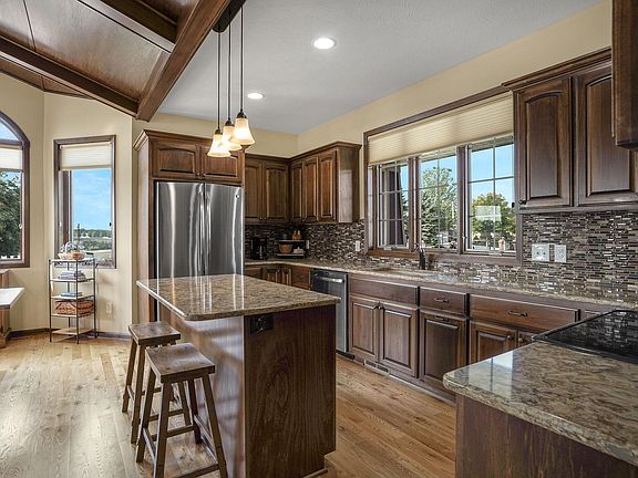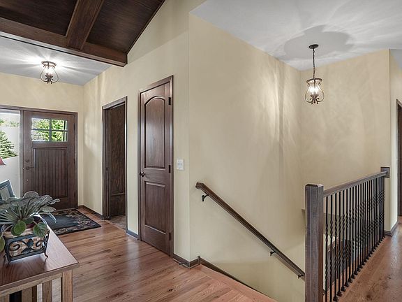 Gorgeous home nestled on the outskirts of Jordan. One level living with a stunning gourmet kitchen, custom cabinets, center island, Cambria countertops and walk-in pantry. Gleaming red oak flooring and a to-die-for vaulted poplar ceiling. Living room features custom built shelving and a lovely stone gas burning fireplace. Striking woodwork throughout the home. Large master suite with private bath, dual sinks, tile shower, and huge walk-in closet. Three bedrooms all on one level, spacious mudrooms with storage lockers. Head on down to the lower level with custom wrought iron railings, 4th bedroom, bathroom and so much storage! Concrete driveway, irrigation system, gutters, insulated painted garage, 14x14 composite deck, welcoming porch, expansive patio, tons of storage and exquisite curb appeal!