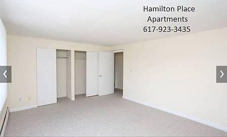 This apartment has a suburban feel in an urban location. Just three blocks from the heart of Watertown Square and its many shops and services, Watertown is bordered by Boston, Cambridge, Newton, Belmont and Waltham, giving Hamilton Place residents immediate access via car or public transportation to places of work, universities, shopping and many cultural activities that the Greater Boston area has to offer. There are Bus 71 to Harvard Square, 70 to Central Square, 57 to Kenmore Square and Express bus to Boston Downtown. The two bedroom and one bathroom unit is on top floor (6th fl), 900 sq.ft., with wall to wall carpet, great closet space, fully equipped kitchen. Rent includes heat, hot water and parking for one car. Laundry and additional storage are in the basement. No pets. Building Amenities * On-site Laundry * On-site Manager * Exercise Room Ad ID#: crg-6349656