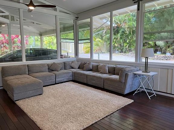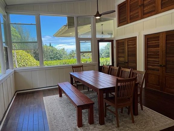 Located in one of Maui's North shore prestigious neighborhood on 2.3 acres, this high-end custom home exudes peace and privacy. This unique 4 bedroom 3 bath home boasts 4,500sf under roof with 3,125sf of living space and has the unique feature of having 2 primary bedroom suites, upstairs/downstairs, with en-suite bathrooms and lanai access. The house has gorgeous Jarrah hardwood floors throughout and has an open concept kitchen/living/dining/large attached screened-in lanai. All the interior doors are in teak. The kitchen has a beautiful piece of Jurassic green granite with a gas cooktop (5 burners) and a brand new Bosch dishwasher, all appliances are stainless steel. There is a dedicated laundry room and a large 2 car carport with lots of storage. There is also an office on the side of the house with its own access. The property is fully fenced and gated and has a spacious sandbox/jungle gym/trampoline area for little ones. This home is available partly furnished: king, queen, double, twin. Available as of 10/1/2022 for long term rent, until end of July 2023 (1 year lease may be possible), $7,950 a month including water, sewer, trash, electric up to $100 per month (photovoltaic system), internet (Spectrum) and monthly yard service. One month deposit, rental application and references required, credit/criminal/eviction check will be performed once selected application is processed. No smoking, no pets/no exception. For showings, please contact Anne Barber, R (B), Maui International Real Estate Services inc.
