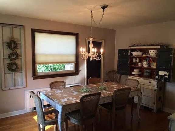 Charming three bedroom Colonial with exposed hardwood floors throughout. Wonderfully maintained and decorated with 25x10 covered side porch with awnings. Updated eat-in-kitchen, dining room, stone fireplace in living room, spacious bedrooms, over-size master bedroom with large walk-in closet. Newly updated full bathroom with ceramic tile. 23x12 finished gameroom with full bathroom and glass block shower. Newly landscaped backyard great for entertaining. freshly painted, 2014' heat pump for boiler, 2013' central air installed, 2015', 10 out of 15 windows are New Renewal by Anderson Windows, 2014' slate roof re-install & gutters, 2013' gameroom carpeting, 2013' new stainless kichen appliances, countertop, sink & faucet, 2014' 25x10 screened in side porch.
