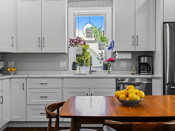 Welcome to 233 Metropolitan Ave — a first-floor gem tucked into the charming, tree-lined streets of Met Hill! This bright and welcoming condo is set in a stunning Victorian full of personality, with beautiful woodwork, graceful curved hallways, and soaring 11-foot ceilings that make the whole space feel open and airy. Step through the inviting foyer and into a cheerful living room that flows right into a spacious eat-in kitchen — complete with Samsung stainless steel appliances, quartz countertops, and plenty of cabinet space for all your kitchen adventures. The sun-splashed primary bedroom is the perfect spot to unwind, featuring wood floors and great natural light. You’ll love the convenience of in-unit laundry and a private patio just off the kitchen that’s made for morning coffee or laid-back get-togethers. All of Roslindale’s favorite restaurants, shops, and parks are just around the corner, and getting downtown is a breeze with nearby public transit. Don't miss this one!
