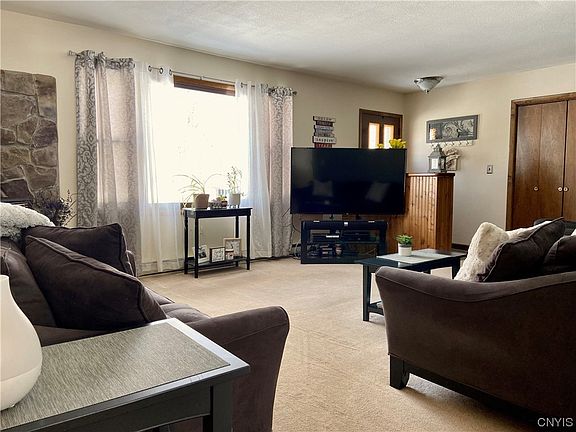 If space for a car enthusiast or craftsperson is on your "wish list" THIS MAY BE THE HOME FOR YOU. Situated on 4 acres this meticulously maintained ranch-style home has SO MUCH TO OFFER. Inside you'll find 3 bedrooms, 1.5 baths, a large living room with gas fireplace and an updated kitchen with island. The entry and dining space just off the deck was renovated and a wall removed opening it up to the kitchen. Featuring tile, updated lighting, modern paint colors and beautiful high-gloss flooring this area leads to the 3-season porch - a perfect spot to enjoy your morning coffee!