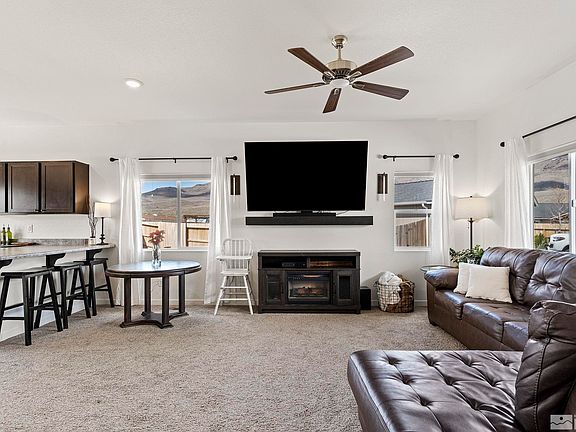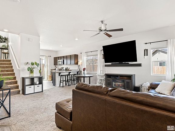 Nestled on a sprawling lot in the Gold Country Estates subdivision with proximity to Dayton State Park, shopping, and more, this contemporary cul-de-sac home awaits! Front yard xeriscaping makes outdoor upkeep easy. The open-concept floor plan embraces an abundance of natural light and simple modernity with plenty of dual-pane windows and a neutral color palette. In the kitchen, appreciate stainless steel appliances, vinyl flooring, sleek cabinetry, laminate countertops, and your very own breakfast bar., Upstairs, you’ll find a lovely primary suite featuring a walk-in closet and bathroom with dual sinks and glass-enclosed, walk-in shower. In addition to the other bedrooms, the upper level also includes a laundry room with a sophisticated washer/dryer setup. The home’s large garage showcases a great workshop space, as seen through the significant cabinetry and plethora of storage space. In your fully-fenced backyard, unwind on an adorable wooden deck or enjoy exercising your green thumb with the raised gardening beds. Inside and out, this home offers dreamy mountain views and highlights the beauty of easy elegance. You don’t want to miss this one!
