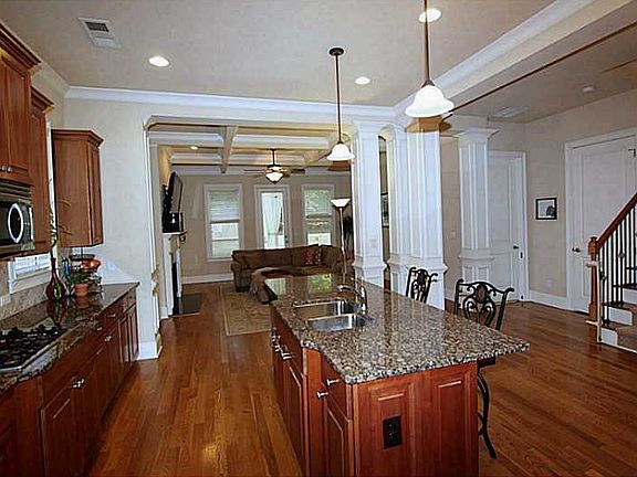 - Kitchen Features: Island, Breakfast Bar, Cabinets Stain, Pantry, View To Fmly Rm, Counter Top - Stone