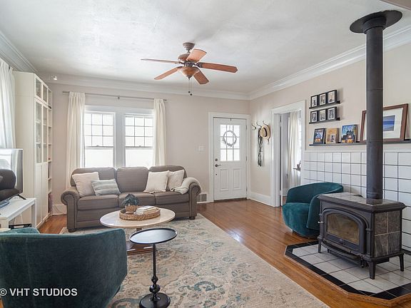 If you love downtown Crystal Lake living then this amazing 4 bedroom, 2 full bathroom bungalow is what you are looking for! The charm exudes throughout with original hardwood floors, crown molding, big bright sunroom, and open floorplan. The lovely kitchen, bathrooms, and home are all updated with today's finishes. The kitchen features new stainless steel appliances, new sink and faucet, hot water spigot, subway tile backsplash, grey cabinets, and quartz counters. The 3 main floor bedrooms are a great size, with interior attic stairs and extra large attic space. The sun drenched sunroom has endless possibilities where you can sit and enjoy the ambience of the outdoors, and flex into whatever meets your needs. This home has a full finished basement, with a family room, full bath, laundry room, 4th bedroom nook, and potential bonus 5th bedroom that is framed in and ready for finishing. Loads of storage downstairs as well, with an extra large workroom and separate storage room. The 2-car unattached garage has an attached storage/workshop area, and great sized fenced yard. All plumbing was updated to copper and all light fixtures changed. The front yard was made into a pollinator garden, full of beautiful native landscape. The side yard has raised herb garden planters, and hops grow in the alley to brew beer. Close to downtown Crystal Lake with so much to do, including Saturday Farmers markets, and weekend game nights at Crystal Lake Brewing. Across the street from Veteran Acres Park, trails, nature center, Sternes woods, and only .3 miles to the Metra! Don't let this one get away!