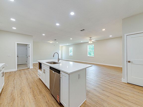 Enjoy an open-concept floor plan with high ceilings, recessed lighting, and luxury vinyl plank flooring throughout. The gourmet kitchen features quartz countertops, shaker cabinets, stainless steel appliances, and a large island perfect for entertaining or family meals. The master suite offers a walk-in closet and a private bathroom, while generous secondary bedrooms provide comfort for family or guests. A laundry room with washer/dryer hookups adds convenience.