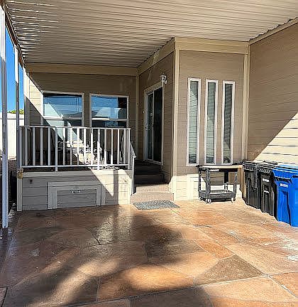 Cavco Parkmodel with large AZ room, fully furnished ready to move in. Large driveway, two storage drawers the complete length of the home. 55+ community (Val Vista Village, one of the most active communities in East Mesa) Annual lot rent paid through Sept 2023.