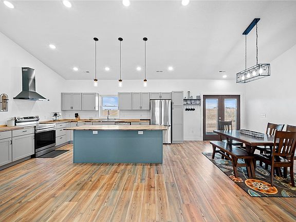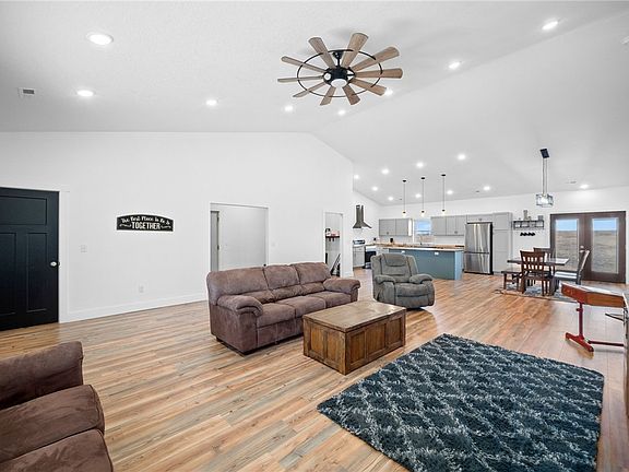 SELLER NOW OFFERING CONCESSION $ TO BUYERS FOR 2-1 INTEREST RATE BUY DOWN! Get away from it all and enjoy the country surrounded by rolling farmland hillsides! Welcome to this MINI-ACREAGE with recently built ranch slab home sitting on 1.5 acres – built in 2022! The zero entry home offers 2184 finished sq ft all on one level – NO STEPS! The open great room with tall vaulted ceilings is a perfect spot for everyone to gather! The kitchen offers soft close cabinet, a walk-in pantry & all apps included! 4 bedrooms with a bonus non-conforming room – a perfect spot for an office, nursery, play room and/or a 5th bdrm! The primary bdrm offers a roomy closet & a private 1/2 bath – the bath does have a huge shower area set up that just needs your finishing touches to complete! There’s a spacious hallway full bath & a utility 1/2 bath in the garage! The 2-car attached garage is huge, sized at 28x42 w/ plenty of room for parking, storage & work space! There’s also a storm-room shelter area just needing a door to complete it! The home has metal siding & roof! There’s big yard for everyone to enjoy – but easy enough to maintain! No covenants! All information obtained from Seller & public records. NOTE: Property will be sold in its existing condition – seller does not plan to make any further improvements. ----- FOR 2-1 RATE BUY DOWN, BUYER IS RESPONSIBLE TO VERIFY WITH LENDER IF THEY QUALIFY; CONCESSION FUNDS OFFERED ONLY WITH ACCEPTABLE OFFER!