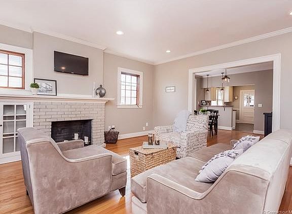 Bright, COMPLETELY RENOVATED BUNGALOW with open floor plan and 9' ceilings. Enjoy effortless entertaining/living with an open, single-level floor plan. Relax on your beautiful screened front porch or plan a BBQ on your spacious back deck. Conveniently located near schools, Old Wethersfield shopping/dining, parks, transportation and commuter access. Spacious two car detatched garage with electric openers and new doors.Designer colors, new kitchen with stainless appliances, soft close cabinets, hardwood floors, dual zone heating, original charm and character with modern updates and amenities. New mechanicals with on demand gas heat and hot water. Adorable office/nursery. Built in window seats, original butler's pantry and walk up attic with loads of storage. Wood burning fireplace, HDMI wiring, dimmable LED recessed lighting and flooded with natural light. Attic or dry/heated basement could be finished to add additional living space. Mud room and full two car detached garage keep muddy boots at bay! Shows beautifully!