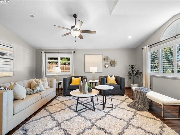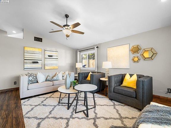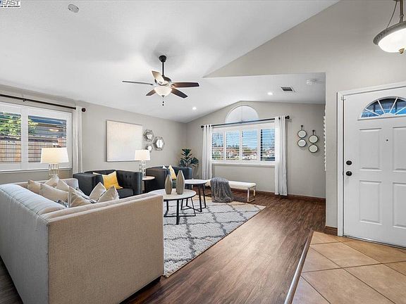 Welcome to this stunning, move-in ready home, offering a spacious and immaculate living experience with 4 beds and 2 baths. The 4th bedroom can be used as a versatile office, exercise room, or guest space, featuring elegant double doors. This beautiful one-story home is nestled on a large, meticulously landscaped lot, providing plenty of outdoor space to enjoy. Step inside to discover an open-concept layout with vaulted ceilings, creating a bright and airy atmosphere throughout. The generously sized living, kitchen, and dining areas seamlessly flow together, perfect for both entertaining and relaxing. The cozy fireplace and French doors leading to the patio add charm and warmth to the space. The kitchen is a true highlight, featuring crisp white tile countertops, a convenient breakfast bar, plenty of cabinetry for storage. Equipped with stainless steel appliances, including a gas stove, microwave, and dishwasher. The Primary is a true retreat, with a spacious walk-in closet and a luxurious private bath. Large French doors open to the private backyard, where you'll find a sparkling saltwater pool — perfect for relaxation or family fun. The oversized two-car garage offers plenty of space for all your projects and storage needs. THIS IS THE ONE!!