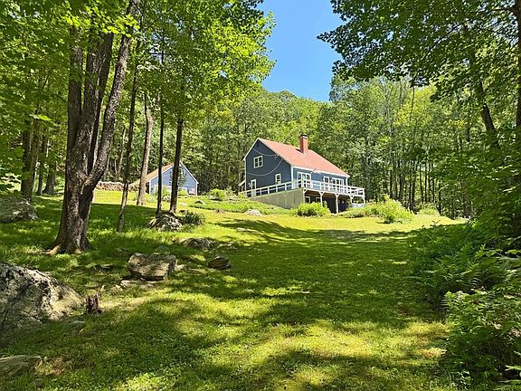 Peace and serenity can be yours with this beautifully maintained Contemporary Saltbox on 7.78 acres nestled in nature. This captivating home features 3 levels of living space, an open floor plan, and an abundance of natural light that radiates throughout. The main level features a kitchen with a breakfast bar and dining area that opens to the living room, which boasts a cathedral ceiling and a soapstone-lined wood stove that will provide a cozy heat source for you this winter and access to the front deck and back porch, where you can enjoy both sun and shade throughout the day. 1st fl bedroom, laundry/mudroom. 2 bedrooms, bath and a walk-in attic on the 2nd fl. A large family room, bathroom, and utility room on the lower level walkout. There's even an outside shower. Attractively landscaped with a giant rhododendron, blueberry elderberry bushes, a plum tree, and wildflowers that attract butterflies, songbirds, and hummingbirds, as well as the trail through the woods to Crag Mountain.