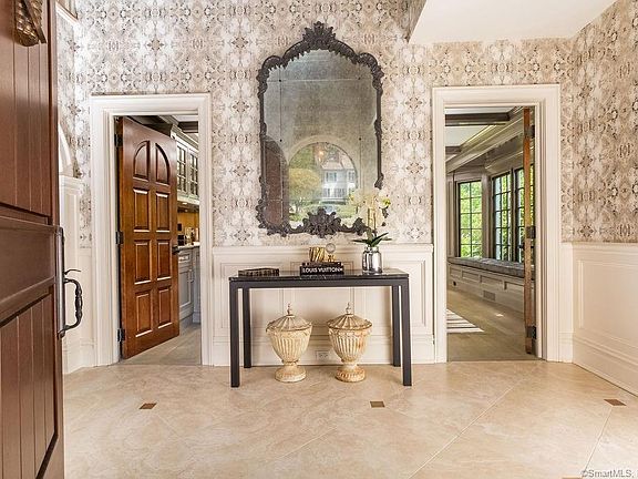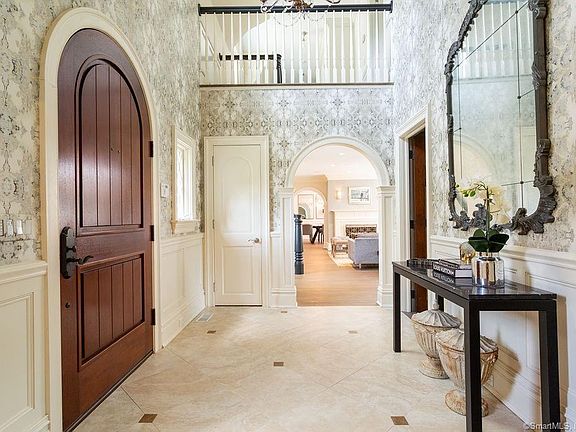 This sophisticated 5 BR, 5.2 BA, 5,594 sf home has been impeccably renovated w/beautiful details, millwork & finishes. The elegant living room & light-filled family room both feature fpls & a wall of French doors opening to the terrace & level yard. A gorgeous arched doorway leads to the library/billiards rm w/wet bar, coffered ceiling & lacquered paneled walls. A gourmet kitchen w/dining area, large dining rm, office & mudroom/laundry complete the main level. The upper level boasts a grand master suite w/dressing rm & luxe bath, laundry #2, 4 BRs & 3 BAs. Lower level has a playrm, media rm & full BA. (750 addtl sq ft. Possible pool site. Enjoy the amenities of private, gated Milbrook Association, just minutes from Milbrook Country Club, Greenwich Ave shops, restaurants, parks, schools, the train & highways.
