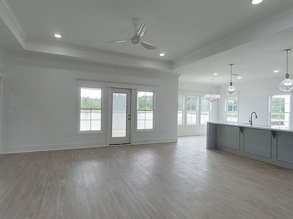BRAND NEW HOME ON THE WATER! Plenty of space in this split floorplan for you, family and or guests. LARGE Laundry Room, half bath and pantry are located off the garage entry. The views feel endless in the kitchen, dining and living room...and the primary bedroom. Enjoy the view from your back porch or throwing a pole in the water from your backyard. Living on the lake is a special kind of way to live. Endless feeling of relaxation everyday.