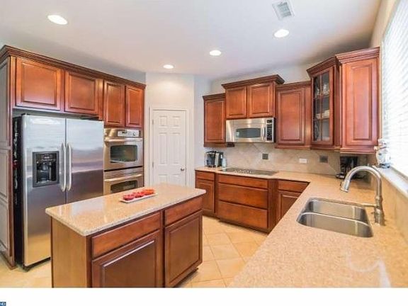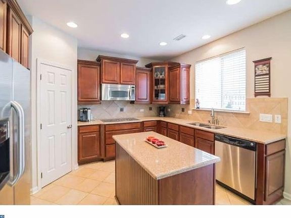 Loaded with upgrades, this attractive Angelina model with stacked stone front and slate porch landing is a pleasure to show. Great entertaining floor plan as the living room with fireplace, eating area and kitchen are all one large open space. The gourmet kitchen boasts stainless appliances, tasteful tile backsplash, double wall ovens, tall kitchen cabinets, practical center island and a large pantry. Natural light fills the breakfast room which has a sliding glass door to the 15'X14' Trex deck complete with solar lighting. The master suite features a bathroom with distinctive tile shower, water closet, soaking tub, attractive fixtures and a large walk-in closet. The finished basement with recessed lighting could be used as a family room or guest room, and since this finished basement space is plumbed for another bathroom and has a separate entrance, it could easily be converted to an in-law suite or secluded home office. Special features include 2X6 construction, 9' ceilings in basement and first floor, oak stairway to the 2nd floor, unfinished basement storage areas, attractive tile gracing the foyer and hallway to the living room and a practical 2nd floor laundry room. Pennland Farms is close to Routes 611 and 313, Peace Valley Park and all the fascinating shopping and eateries which make Doylestown popular.