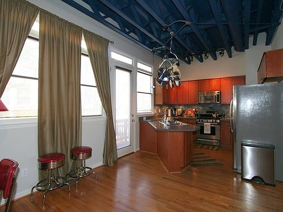 Goodbye Commute-Live in the heart of Castleberry Hills! 3 Sty Loft Style Condo w/fenced & Gated Courtyd parking+2 CAR GARAGE! 1st Flr: Studio space w store front facing Peters St. Main Fl: Hdwd Flrs,Hi Exposed Ceilings, Brick wall, Custom Kitchen w/top appl+ delightful balcony. 3rd Flr:HW Floors,Mstr Suite w/Walk-In California Closet. MBath w/ upgraded lighting,shower &tub,framelss glass+Dual vanities. 2nd BR w/Calif closet& private bath. Hall closet plumbed for laundry. New Roof w/city views! Steps to new Falcons Stadium,great restaurants, <1 mi to CNN & Centennial Pk.