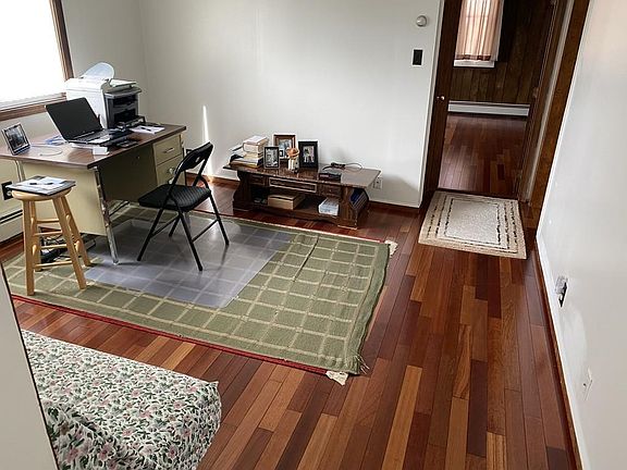 Walk into this economically sized multi and you will fall in love with the Brazilian hardwood floors throughout both units and common area, updated kitchen, updated bath, newer heating system, newer windows, vynil sided, a farmers porch that leads to an ample driveway that accommodates up to 4 cars and a location that makes it very easy to commute. The first floor is perfect with 2 bedrooms and the second floor unit provides you with help to pay the mortgage. Can't be beat!!