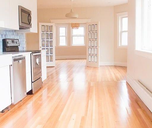 Be the first to enjoy this beautifully renovated spacious three bed two full bath. Less than half a mile form Roslindale Village. All units are extremely sunny with large windows overlooking the adjacent community garden. The unit features a modern kitchen with a quartz countertop, large pantry and brand new stainless steel appliances including a dishwasher, side by side fridge, garbage disposal and microwave. Additionally the unit features two full modern baths with zoned heaters, in-unit washer and dryer, custom closets in bedrooms and individually zoned modern heating system. Less than 20 minutes from The Longwood Medical Area, Children's Hospital, Bringham & Women's and The Dana-Farber cancer institute. Two miles from Brigham and Women's Faulkner Hospital. The front room can have a door added if you would like to use it as a four bed.