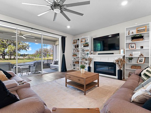 Welcome to this exceptional Pulte Yorkshire 5-bedroom, 3.5-bathroom home, where luxury meets tranquility. Nestled in a picturesque setting, this home offers breathtaking water and conservation views. Step inside and experience the seamless flow of the open-concept design, enhanced by pocket sliding doors that invite the outdoors in. Enjoy the homes gourmet kitchen, featuring pristine white cabinetry, quartz countertops, a spacious breakfast bar, and top-of-the-line appliances. A generous pantry provides ample storage, ensuring a clutter-free space. The Yorkshire floorplan is designed for functionality and versatility, offering a private first-floor guest suite—complete with a full bath and walk-in closet. Upstairs, the primary suite offers a spa-like ensuite featuring a double vanity, an expansive walk-in closet, and stunning views. Three additional bedrooms, a full bath, and a versatile loft area. Thoughtful upgrades, including ceiling fans, a water softener, and a screened lanai.