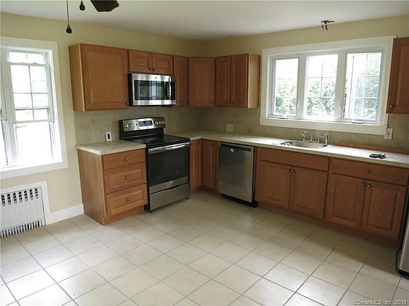 Newly renovated Colonial with new eat in kitchen with new tile floor and new stainless steel appliances. New hardwood floors in the huge living room that has 2 fireplaces. New carpet in the bedrooms. Outside and inside newly painted. Tons of storage space and detached garage on nice lot.