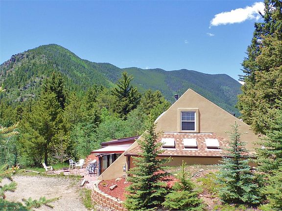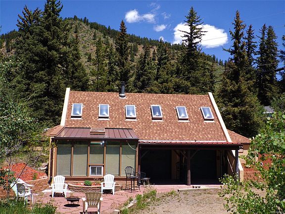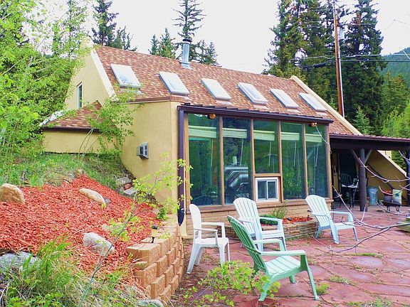 Perfect mountain Get-away! Custom 1990 build on the edge of town with spectacular 360 degree mountain views. Walk to cafes or enjoy coffee on the creek. The lot borders the West Fork of Clear Creek on one side and Lion Creek on the other side. Open floor-plan, Sunny w/skylights and vaulted ceilings. Large open kitchen, lots of cabinets, black appliances and a large center island for entertaining. Enjoy the cozy sun-room with gas fireplace. Large master with lots of closet space. Large open bathrooms. On public water and sewer so no septic or well to deal with. Enjoy historic mountain towns, unique bistros & shops, rafting, zip-lines, horseback riding, skiing, casinos. 40 min to Denver, 20 min to skiing.