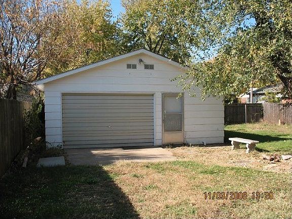 Very nice 3 bedroom, 1 bath, brick veneer ranch with a car attached garage and a 24 x 30 detached 2 car garage/workshop with Heat/AC and it's own driveway from the street to park an R.V. - There is a 12 x 21 attached bonus sun/play room overlooking the privacy fenced backyard with window AC. Home has hardwood floors throughout in very nice condition with a large picture window in the living room. All appliances stay including washer and dryer. Nice covered 7 x 11 concrete front porch -new guttering and downspouts - very nice concrete picnic setting in backyard - only 2 blocks from Haysville middle school