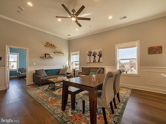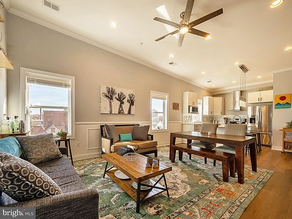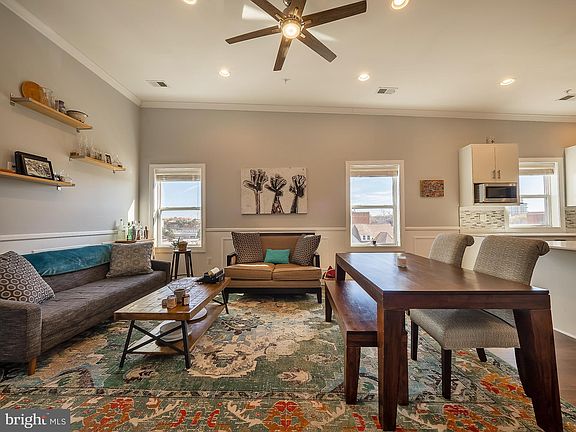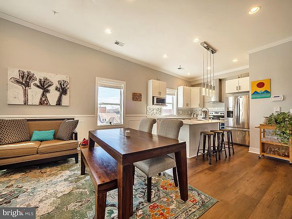 NEW PRICE! Spacious and modern penthouse condo with vaulted ceilings, a large private balcony, and parking! The open living area offers great natural light, wainscotting, crown molding, recessed lights, and is perfect for entertaining with space for both a living room and a large dining table. The chef's kitchen features stainless steel appliances, abundant counter and storage space, and an island with breakfast bar. The primary bedroom suite has a charming bay window, it walks out to the unit's oversized private balcony, and it has an en suite bathroom with double vanity. The second bedroom features another bay window (perfect for an office nook) and has its own en suite bathroom with tub/shower combo. Completing the interior are a powder room for guests and in-unit washer and dryer. This home also comes with one dedicated parking spot and a large storage unit. Perched high above the street on a lovely corner lot, this boutique condo building was new in 2015, it is both pet- and investor-friendly, and it has a low monthly fee. And the location offers all of the nearby amenities that one could ask for - the MBT bike path, Union Market and all of its exciting new developments, popular restaurants like Masseria and St. Anselm, Eckington's fantastic new Alethia Tanner Park, the NoMa Metro, a variety of coffee shops and grocery stores, and it is only one block to the new Lost Generation Brewery. Welcome home!