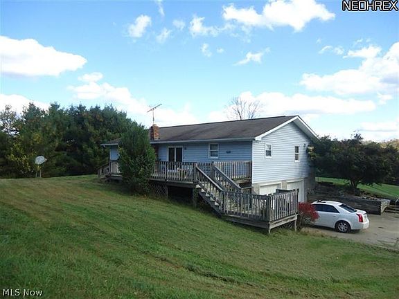 3.996 Acres of privacy. Located in the beautiful hills of Southeastern Ohio, this home is a ranch style built in 1989 by the current owner. 3 bedrooms, living room, kitchen, dining room & 3 baths. The basement has a large recreation area, x-large walk in closet and a built-in 2 car garage. The double deck on the rear of the home has beautiful views of the Wolf Creek Wildlife Area, which has access to public hunting and fishing. Located just 6.5 miles from the scenic Muskingum River and just minutes away from Burr Oak State Park. Central heat and air and a woodburner offer budget friendly bills. This home offers a serene and peaceful setting for anyone with the love of the country yet the convenience of nearby towns.New septic in 2005. 2nd garage door opener is in box not installed. Spring water, never ran out of water. Replaced central air in 2008, furnace in 1996. Home is wired for security and sound system all wires come together in hall closet but never completed. Electric $60-$120