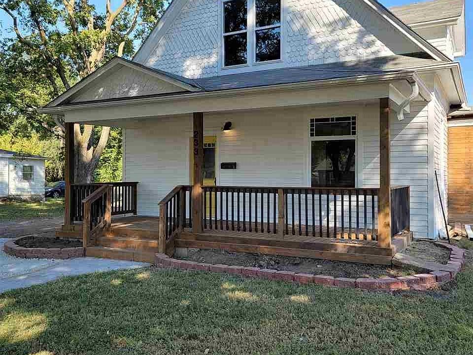 Lovely farmhouse modern styling in this newly renovated and updated home. You will fall in love with the open floor plan and find yourself enjoying the ease of entertaining with the huge center island that flows nicely into the dining and living spaces. Details, details, details abound as the 2020 renovation. Custom wood carport, large wrap around screened in back porch, cedar front porch and large yard expand your living space. Main floor bedroom is stunning with restored original double doors and barn door closet door. Upstairs boosts two additional bedrooms with ample closets and storage and shared large Jack and Jill bathroom with seperate shower and toilet room. Seller of this home is licensed real estate agent in Kansas