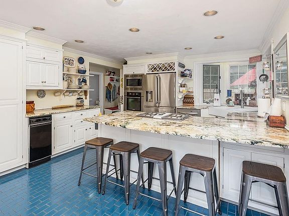 - Kit Dscrp: Main Level, Dining Area, Countertops - Stone/Granite/Solid, Flooring - Stone/Ceramic Tile, Stainless Steel Appliances, Open Floor Plan, Recessed Lighting, Window(s) - Bay/Bow/Box, Exterior Access, Country Kitchen, Gas Stove, Peninsula