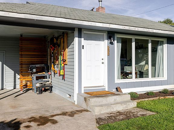 Welcome to a meticulously cared-for residence, offering a wonderful lifestyle in close proximity to town. This thoughtfully updated home features two bedrooms and one bathroom, providing an ideal space for comfortable living. The front of the home showcases a well-maintained lawn, complemented by a welcoming entrance. The exterior exhibits a classic design. As you enter, you will immediately notice the open layout with original haedwood floors. The kitchen is a highlight, featuring modern appliances and ample counter space. Large windows allow natural light to fill the space, creating a warm and inviting atmosphere. The backyard, thoughtfully landscaped, offers a private retreat for outdoor activities or simply unwinding after a busy day. The garden beds provide ample opportunity for planting flowers or a vegetable garden, promoting a connection with nature. Situated on a private street, this property thrives in its peaceful environment yet remains conveniently close to amenities.