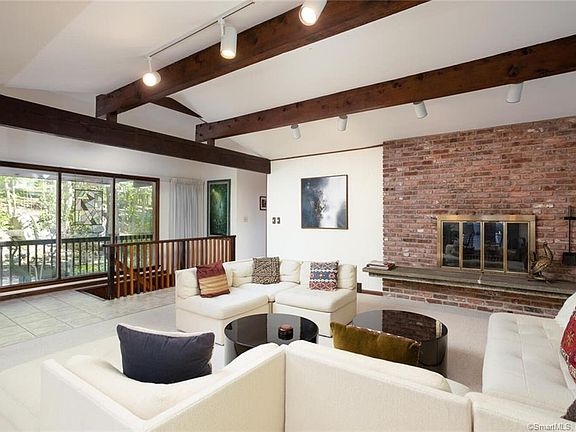 Beautifully maintained and updated Mid Century Modern Contemporary Ranch. Architecturally appealing in floor plan , design, and use of space. Vaulted ceilings, good room sizes and two full levels of living An addition by the owner expanded the primary bedroom also adding a third bay to the garage. The primary bedroom is extremely spacious with a redone bath with radiant heated floor and steam shower. Nicely updated kitchen and baths. Relax and enjoy nature and fresh air on an oversized three season porch. Full house generator Have morning coffee on deck and enjoy beautiful views of scenic nature Conveniently located at the end of a sought after North Stamford cul de sac
