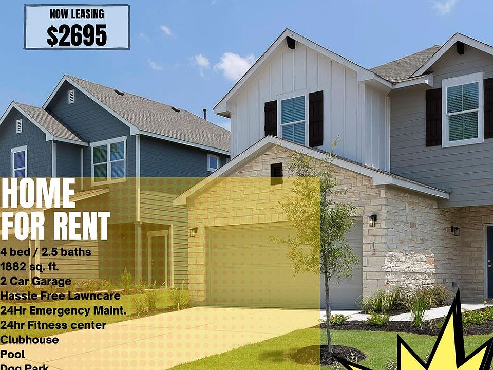 Beautiful 4 bedroom 2.5 bath two story home available for immediate move in! Home comes with fridge, gas range, dishwasher and microwave. All bedrooms are located on the 2nd story of the home. Our community offers, 24/7 fitness center, pool, bbq grill, pet park and access to the San Gabriel River where you can take an evening walk or run! Renter pays all utilities and addition fees for monthly pest control $12 and hassle free lawn care $75.