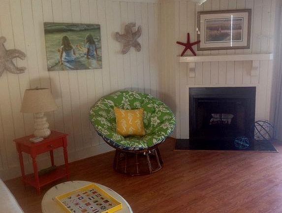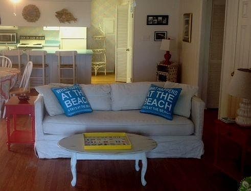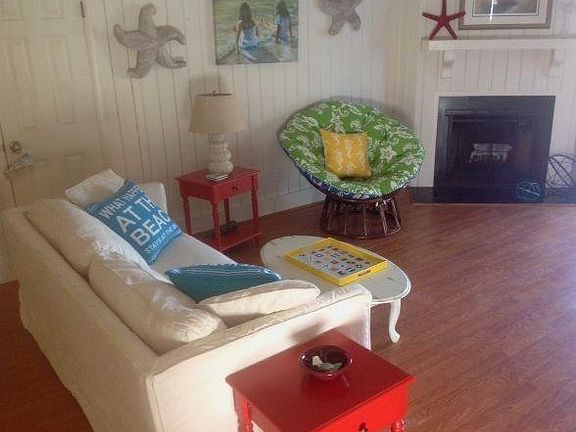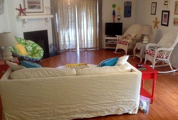 Walk in Smiling- you are at the beach!! This delightful 2 Bedroom, 2 Bath unit has many upgrades which all add up to a wonderful getaway. Upgrades include: New carpeting in the Bedroom, new bedspreads and prints throughout, new lamps and other accessories and a Shabby Chic slipcovered sofa in excellent condition. Spacious Dining /Kitchen and Living area are all open with a kitchen bar to gather at mealtime. Larger Kitchen offers lots of cabinet space both up and down, a counter/bar for meal prep and counter for seating. Full size Washer and Dryer off kitchen with separate full size pantry. Fireplace for Duraflame logs and Living Area opens on to oversized deck for an afternoon sunset or a cup of morning coffee. The deck offers two closets for additional storage. The decks, pickets
