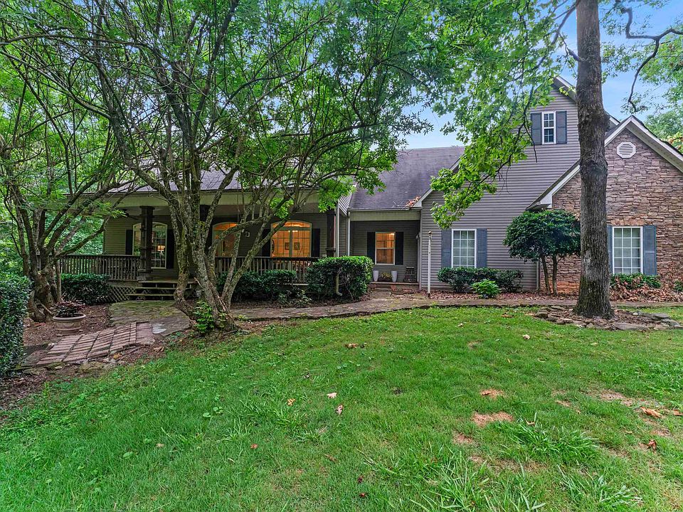 Discover your private oasis in this spacious 4-bedroom, 3-bathroom home! The main level boasts a massive stone fireplace and vaulted ceilings in the living room, just off the slate-tiled foyer. The kitchen features elegant granite countertops and an island, complemented by a deck with a grilling area. The master bedroom with an en-suite and the laundry room are conveniently located on the main floor for easy access. Downstairs, the basement houses a living area with two bedrooms, one bathroom, a den, and a second kitchen. A large walk-in attic offers potential for future finishing. Nestled on 5.1-acres this home includes a 2-car garage on the main level and an additional garage on the basement level. The property is accessed via a long gravel/dirt road.