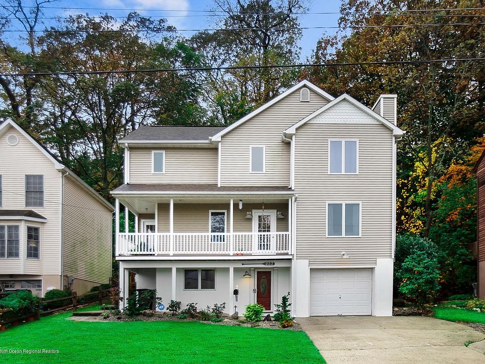This large 3 bedroom 2.5 bath home with an open airy floor plan, with wrap around porch and deck with private yard is sure to please! Finished first floor / basement offers entry from the garage, large playroom and foyer. Second floor features warm inviting family room / living room combo with hardwood flooring and cozy Fireplace. Open kitchen with granite counters and sliders to deck. Large dining room for entertaining!. third level you find generous sized bedrooms and a Master Bedroom with large closets and master bath. Laundry room conveniently located on bedroom level too! Close to downtown, coffee shops and beaches! Fast Ferry to Wall St!! 40 mins by Ferry!!