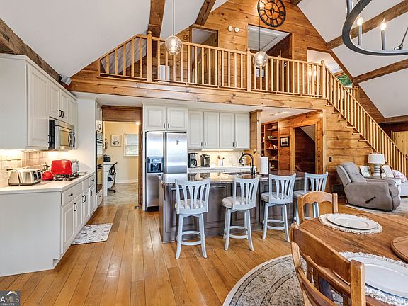 Welcome to 233 Soquili Trail in the desirable Hickory Cove community of Jasper. Nestled on 2.46 private acres, this immaculate home offers unbelievable long-range mountain views and breathtaking sunsets that define North Georgia living. This multi-level, open-concept home with upper-level bedrooms and bonus space features 3 bedrooms plus an office (easily converted into a 4th bedroom) and 3.5 bathrooms. The finished terrace level is a complete in-law or teen suite with its own private entry, ideal for multi-generational living, extended guests, or private rental space. Step through the beautiful open foyer and be greeted immediately by mountain views, creating a dramatic and inviting first impression. The heart of the home is the open-concept family room, anchored by a stacked-stone wood-burning fireplace, which flows seamlessly into the family dining area and the gourmet kitchen. The kitchen features custom cabinetry, granite countertops, a walk-in pantry, stainless steel appliances, ample prep space, and a large breakfast bar, perfect for both entertaining and everyday living. A spacious laundry room adds functional convenience. The primary suite is a true retreat, complete with a gas fireplace and expansive windows framing the mountain views. Outdoor living is exceptional, with a spacious screened-in porch perfect for year-round enjoyment and a large deck overlooking the mountains, providing multiple ways to relax and entertain while enjoying the natural surroundings.