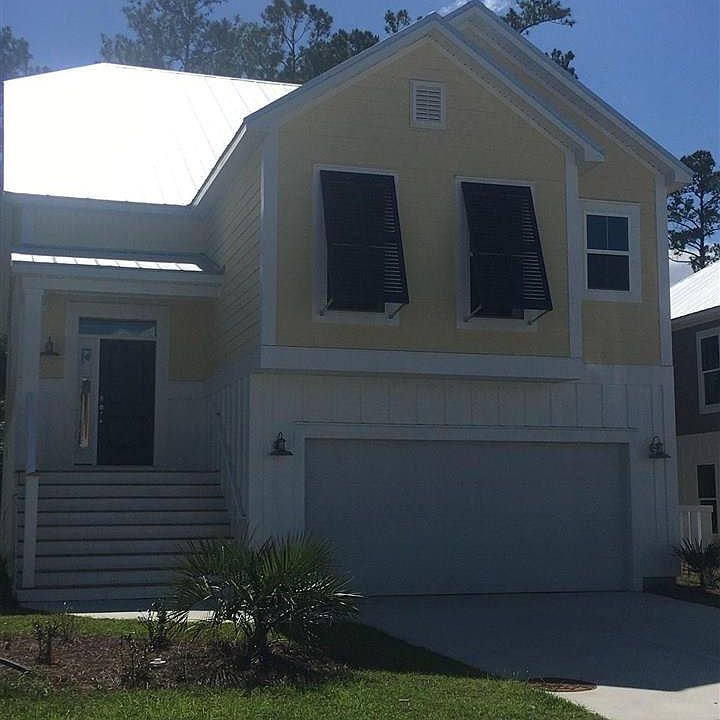 The Summerlin, a spacious social beach home! The metal roof & Bahama shutters accent the "Raised Beach" look. This home has all the daily living areas on the main floor, A very open kitchen/family/dining area cater directly to the modern social lifestyle! The spacious gourmet kitchen features a large island with quartz countertops, stainless steel appliances & 42” cabinets! Enjoy breakfast overlooking your fully sodded & irrigated backyard from the main floor porch balcony! 9’ ceilings on both floors with smooth ceilings. The master suite & bath offer a luxury tiled shower, a large walk-in closet & private water closet. The Summerlin offers 2 covered porches - one off the family room & one on the ground floor. 2 bedrooms, bath, & game room are on the ground floor - perfect for the kids or guests to have their own space.