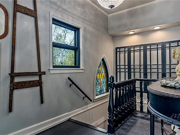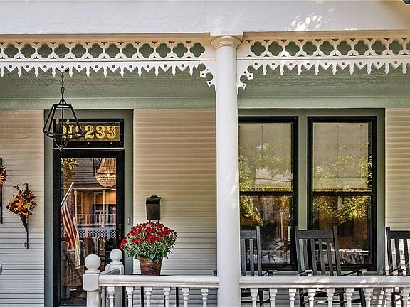 This 2019 Historic Preservation Award-Winning Victorian Home is a rare find in the favored Spring Street neighborhood of the Historic District. The front porch is eye-catching with a vintage pressed tin ceiling, intricate fret work, columns and spandrels. The original front door with an oval window opens into a beautiful foyer with an arched stained glass window and crystal chandelier. The formal living room has vintage heart pine floors, a fireplace with marble surround and windows that flood the room in natural light. The gourmet kitchen has beautiful Rococo quartz counters, custom cabinets, subway tile back splash and antique stained glass windows that offer a view of the deck. The ground level family room has beamed vaulted ceilings, a fireplace with black marble surround and a large picture window that overlooks the deck. The home's exterior is flanked by a secluded courtyard with a stone patio and a large wooden deck for entertaining. You'll enjoy the easy level walk to downtown shops, galleries and dining.